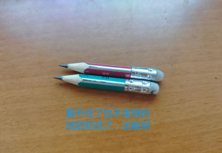 比如我们家二宝,每次铅笔用到很短,才肯扔。我每次说他,他都会说,奶奶说了,还能用!
